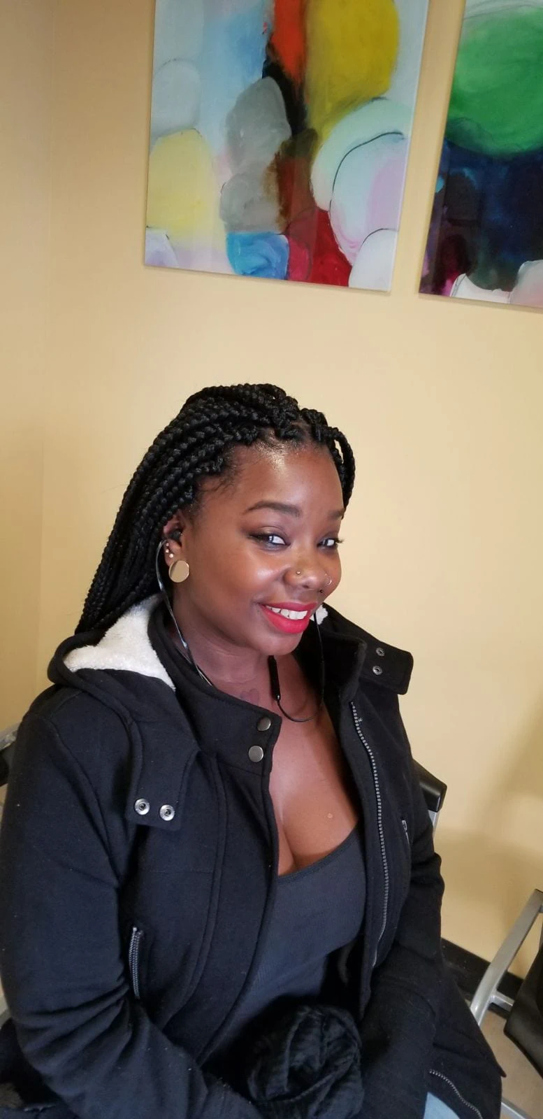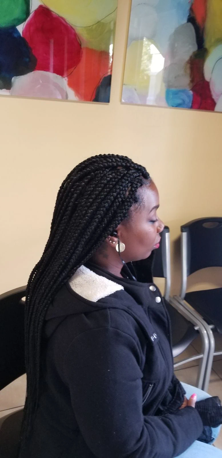 Box braids are completed using a unique four strand braiding technique with extensions and box-shaped parting at the client’s scalp. The hair is completely braided from the scalp to the end of the braid.